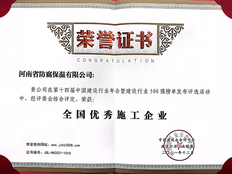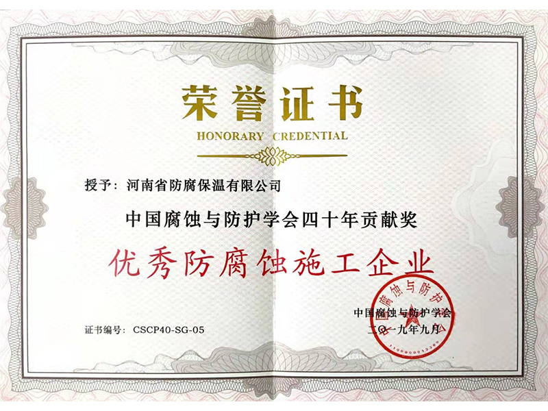 公司榮獲”中國(guó)腐蝕與防護學(xué)會(huì)四十年貢獻獎--優秀防腐蝕施工企業“榮譽稱号